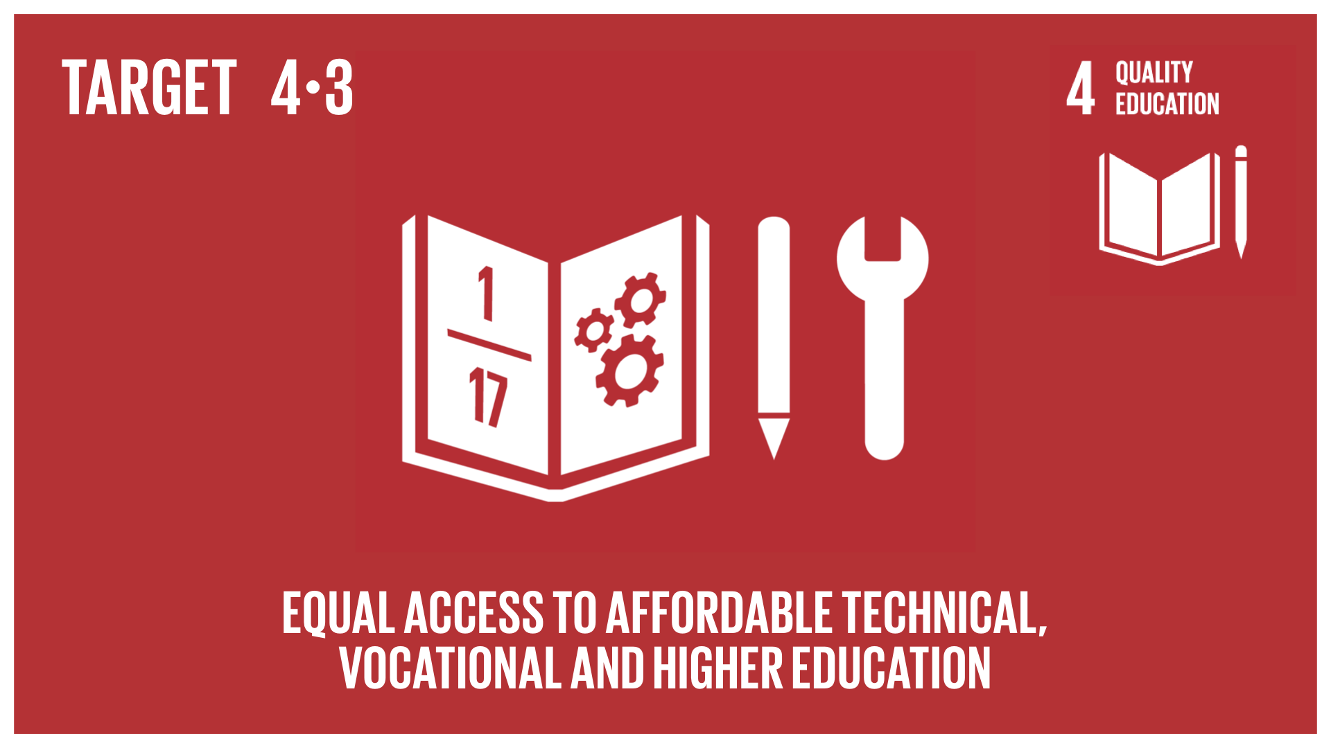 4.3 Tegen 2030 gelijke toegang garanderen voor alle vrouwen en mannen tot betaalbaar en kwaliteitsvol technisch, beroeps- en hoger onderwijs, met inbegrip van de universiteit.