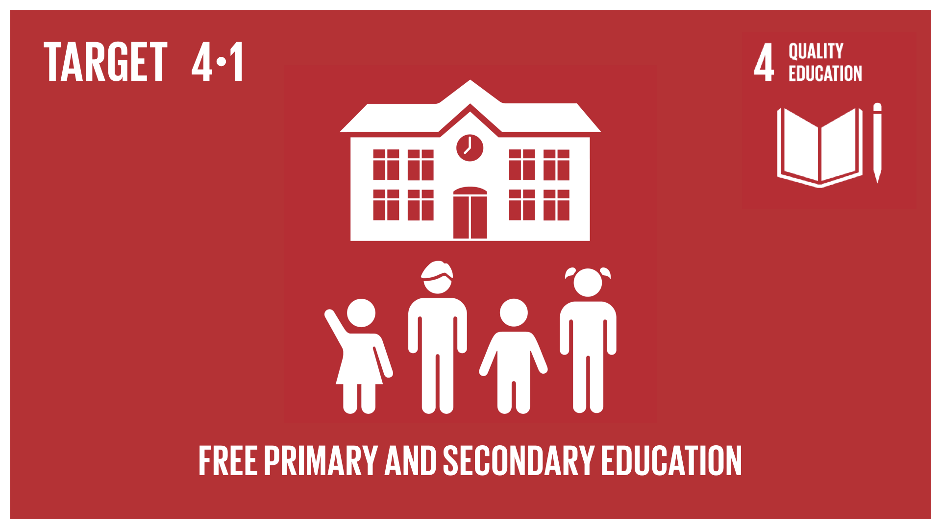 4.1 Er tegen 2030 voor zorgen dat alle meisjes en jongens op een vrije, billijke en kwalitatief hoogstaande manier lager en middelbaar onderwijs kunnen afwerken, wat moet kunnen leiden tot relevante en doeltreffende leerresultaten.